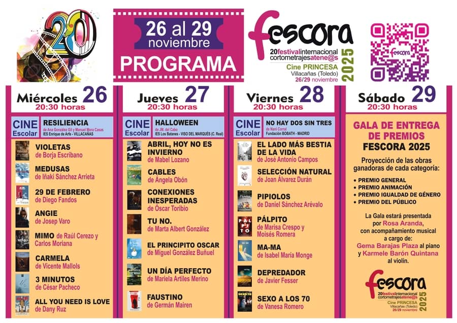 El Festival Internacional de Cortometrajes FESCORA se celebra anualmente en Villacañas (Toledo) desde 2006. Fue impulsado por la Asociación de Mujeres ATENEA y el Ateneo Villacañas, a los que en 2010 se sumaron la Fundación Ormeña y Ruedamundos, en la actualidad la Asociación ATENEA es la organizadora del festival.